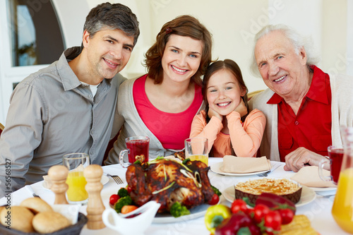 celebration, dinner, christmas, family, occasion, eve, tradition, person, people, day, thanksgiving, relation, daughter, female, woman, happy, smiling, roasted, baked, cooked, event, adult, young, mother, eltern, man, male, father, husband, wife, turkey, served, pretty, photogenic, son, senior, elderly, together, children, girl, home, cheerful, granddaughter, gathered, generation, table, tableware, grandfather, grandparent, looking