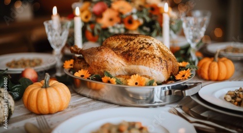 Thanksgiving Turkey Feast In A Cozy Dining Setting With Seasonal Decor