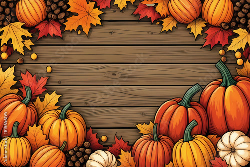 thanksgiving, vector, background, apple, pumpkin, fallen leaves, wooden, copy space, text, halloween, seasonal, autumn, harvest, holiday, celebration, festive, graphic, design, illustration, rustic, traditional, foliage, wood, banner, poster, invitation, greeting card, decor, autumn, cosy, warm, colours, orange, brown, red, yellow, november, feast, food, cornucopia, bounty, festival, decoration