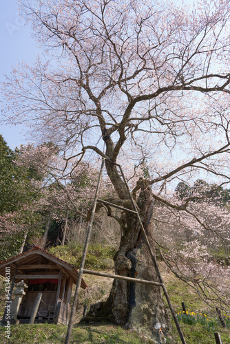 The 800-year-old Iwai-une cherry tree is in full bloom.