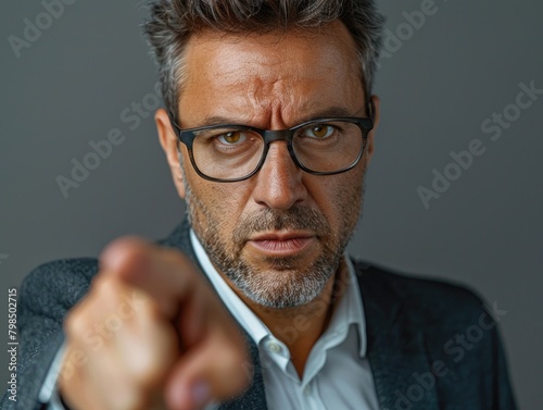 person, adult, pointing, man, portrait, one person, photo, front view, adults only, color image, studio shot, human hand, horizontal, young adult, waist up, human finger, confidence, finger, indoor, serious, businessman, male, young men, standing, beard, business, casual clothes, hand, indexed, anger, attitude, contemplation, gesticulate, head shot, lifestyle, showing, vertical, copy space, looking, communication, facial expression, decision, displeased, furious, gesture