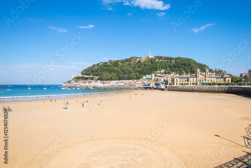 The Beach of La Concha Donostia, a sand beach with shallow waters and tide. It is one of the most famous urban beaches in Europe. Donostia San Sebastian is European Capital of Culture 2016