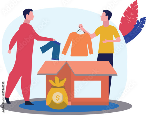 donation, box, boy, giving, help, illustration, social, give, donate, vector, flat, charity, concept, finance, money, investor, funding, share, sponsorship, financial, sponsor, coin, support, payment, hope, gift, care, volunteer, people