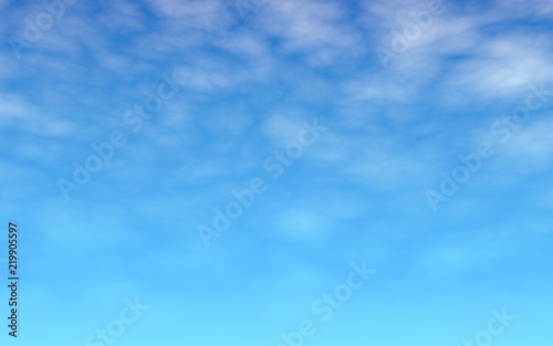 The bright sky in the morning. Blue sky background with white clouds. Cumulus white clouds in the clear blue sky. 3D illustration