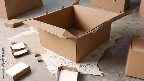The cardboard box is broken.