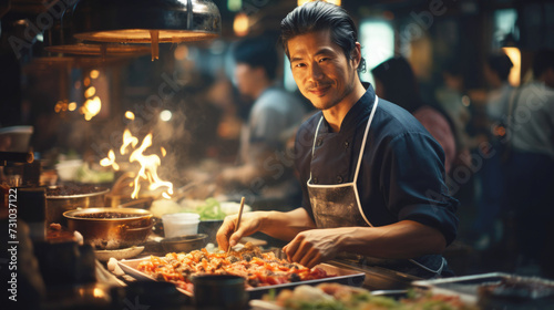chef, cooking, asian, kitchen, food, eatery, cook, seafood, fish, preparing, man, uniform, korean, dynamic, cafes, asian, preparation, people, meal, cookery, work, receipe, meat, working, dish, dinner, holding, professional, gastronomy, eating, table