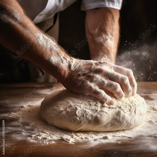 the chef's hands knead the dough,.