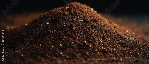 hot drink, ground, mound, pile, macro, closeup, texture, granular, brown, dark, roasted, organic, earthy, aromatic, bokeh, depth, detail, background, caffeine, kitchen, culinary, beverage, ingredient, studio, moody, low key, surface, particle, composition, rich, natural, scene, warm, shadow, contrast, raw, dirtied, grainy, photo