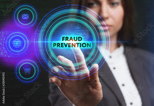 The concept of business, technology, the Internet and the network. A young entrepreneur working on a virtual screen of the future and sees the inscription: Fraud prevention