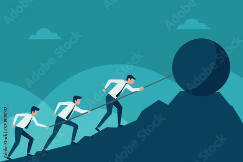 concept, team, building, employee, work, together, project, man, stretching, slope, holding, rope, business, people, vector, illustration, woman, businessman, silhouette, success, couple, sport, leadership, person