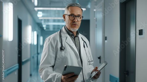 medicine, technology, datum, doctor, professional, health care, senior, mature, digital, analysis, goggles, physician, tablet, medicals, male, hospital, confident, clinic, care, stethoscope, uniform, modern, health, interior, serious, holding, communication, corridor, coat, hallway, occupation, consultation, expertise, diagnosis, clinical, specialist, expert, discussing, practitioner, researching, diagnostic