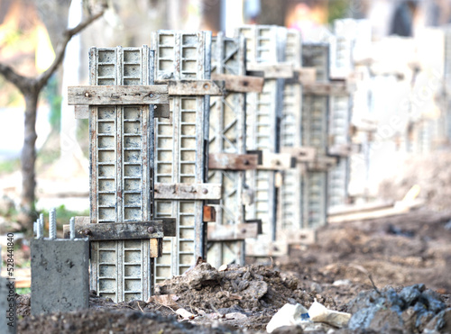 The construction pillars are placed in a deep line