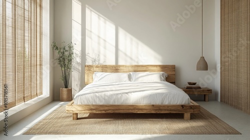 ai, white, home, bedchamber, wooden, bed, natural, light, bamboo, shades, cosy, relaxation, interior, design, minimalist, calmness, sunlight, duvet, decor, serene, warm, colours, indoor, plant, simple, aesthetic, furniture, bedding, rug, soft, texture, contemporary, peaceful, stylish, inviting, harmony, element, calming, zen, space, comfort, rustic, neutral, tone, room, layout, idea, sleep, material