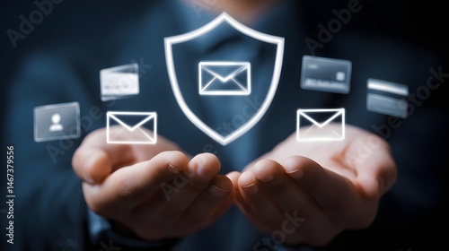 The Digital Age of Scam Email Protection Illustration Concept Digital Warning Scam Phishing and Security with Hands and Technology