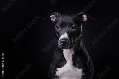 The dog is a pit bull Terrier posing in Studio