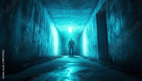 The Dreadful Shadows of a Gloomy Corridor, Silhouette of a Person Engulfed in Darkness, the Horror of Unseen Terrors Creeping Closer, A Haunting Visual Depicting the Unseen Evils Lurking in the