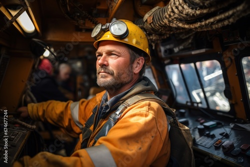 The driver mechanic checks the condition and performance of industrial excavator components before working on open coal.