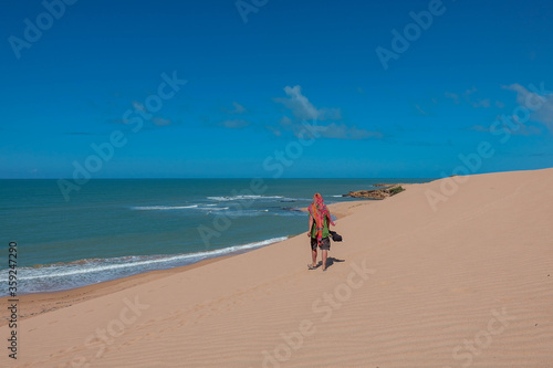 The dunes of Taroa |Man walks over the sand to the beach - Tourism |Punta Gallinas Colombia Travel