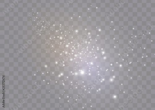 The dust sparks and golden stars shine with special light. Vector sparkles on a transparent background. Christmas light effect.