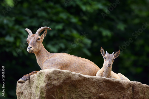 The East Caucasian tur or Daghestan tur (Capra caucasica cylindricornis), female with young