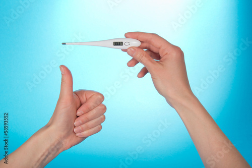 accuracy, background, blue, body, calibrated, celsius, clinical, digital, display, electronic, fever, flu, hand, health care, household, disease, keep, measurement, medicals, medicine, method, norm, object, plastic, scrutiny, sensor, showing, small, temperature, test, thermometer, tubular, white