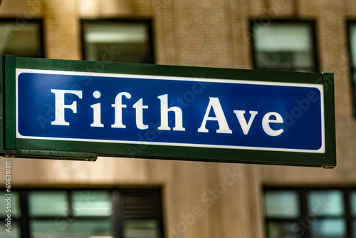 The emblematic sign on Fifth Avenue in the heart of the Big Apple, in the heart of Manhattan in New York (USA).