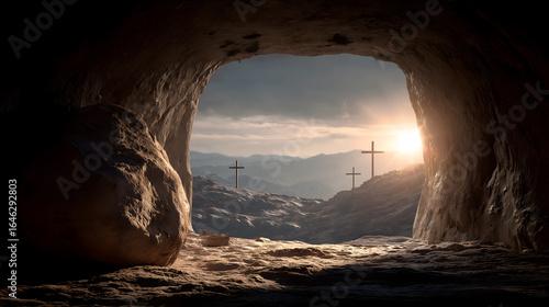 empty, tomb, jesus christ, stone, rolled, away, dawn, cross, resurrection, hope, cave, light, landscape, spiritual, symbolism, christianity, morning, nature, scenery, faith, history, sacred, view, mountain, peace, serenity, rock, sky, sunrise, holy, scene, depth, atmosphere, journey, belief, tradition, landmark, heritage, mythology