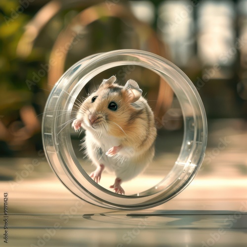 The energetic and active nature of a hamster running in its wheel. The hamster’s movement and happy environment create a lively, charming image. Perfect for pet websites and small rodent equipment.