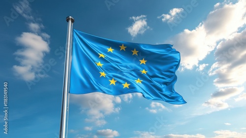 european, union, flag, waving, blue, sky, cloud, public, gathering, daylight, symbol, identity, oneness, community, celebration, europa, democracy, respect, culture, harmony, colours, patriotism, wind, government, national, pride, organisation, people, event, breeze, representation, emblem, star, movement, solidarity, freedom, policy, international, horizon, atmosphere, awareness, engagement, vision, diplomacy, heritage