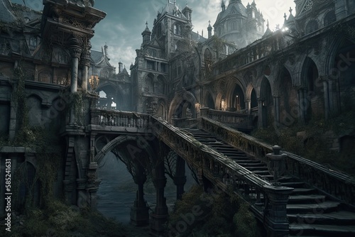 The fantastic dark city with mythical, magical atmosphere treasures