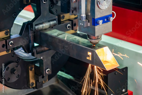 The fiber laser cutting machine cutting the stainless steel tube control by CNC program. The sheet metal working processing by laser cutting machine make the engrave at the stainless steel pipe parts.