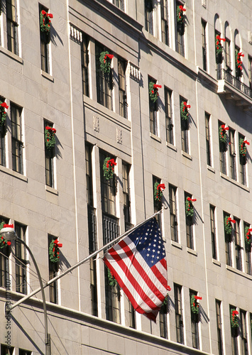 us, american flag, exterior, color image, christmas, new york city, tall building, manhattan, mark, outdoors, overseas, grey, flag, flag pole, fitting, building, event, national flag, work tool, stimulation, photo, custom, vertical, window, tool, stick, north america
