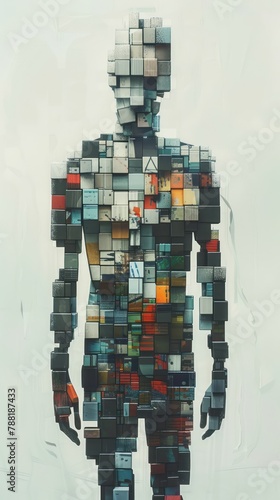The figure of a man consisting of many multi-colored cubes. Neurodiversity