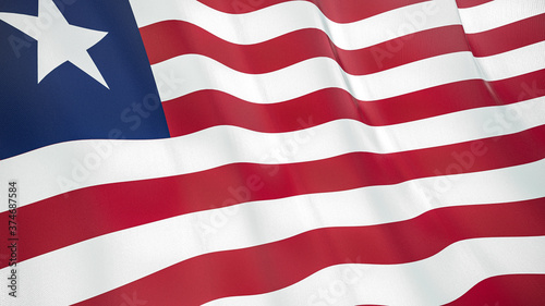 The flag of Liberia. Waving silk flag of Liberia. High quality render. 3D illustration