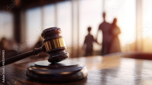The gavel symbolizing justice amidst a family silhouette in a courtroom setting