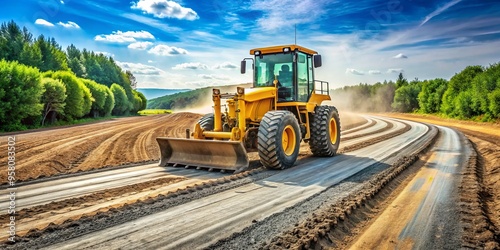 The Grader machine expertly flattens out dirt roads during road construction, ensuring a smooth surface for drivers.