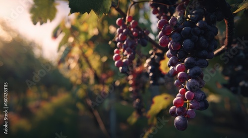 The Grapes Hanging Gracefully in a Sunlit Vineyard Setting