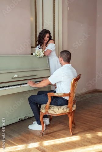 background, music, closeup, fashion, dress, indoor, adult, play, white, bride, female, black, instrument, wedding, pianist, lifestyle, beauty, grand, caucasian, happy, portrait, groom, musician, girl, happiness, romantic, love, people, couple, romance, man, male, sitting, bouquet, married, event, vintage, fun, woman, 2, together, classical, hugs, young, lady, human, art, musical, beautiful