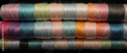The harmony of thick threads in pastel colors on a black background, the threads are centered