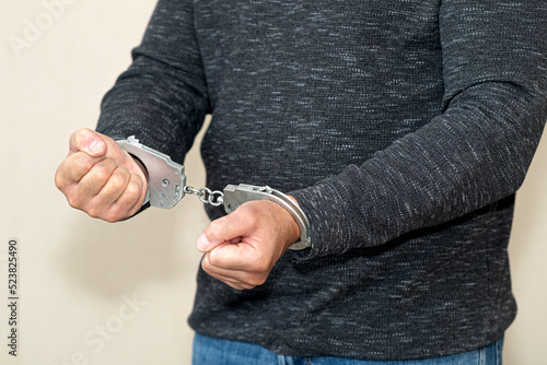 The hijacker in handcuffs at the scene of the crime was detained by the police. Crime, car theft.