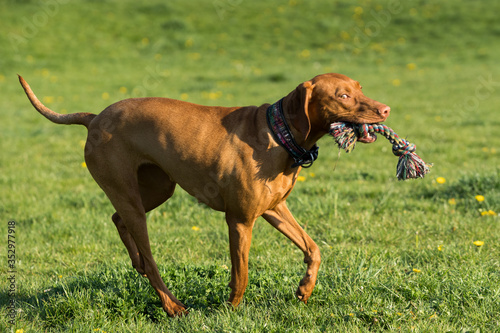 carries, capture, toy, speeding, bitch, young, thoroughbred, pedigree, pedigree dog, kennel, winner, animal, runs, fast, tall, brown, short hair, brown hair, collar, bred, fur, play, friends, snout, beautiful, ear, paw, claw, nose, healthy, strong, vet, domestic, species, quadruped, viviparous, mammal, gentle, loyal, specialized