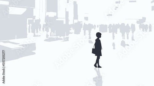 silhouette, businessperson, briefcase, city, crowd, urban, anonymous, professional, solitude, isolation, contemplation, business, career, commuting, urban life, anonymity, blurred background, out of focus, monochrome, greyscale, standing, woman, female, perspective, city life, street scene
