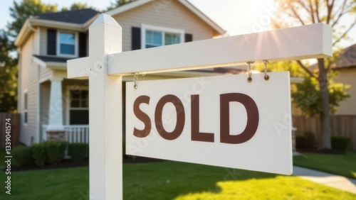 The inscription "Sold" on the background of the house