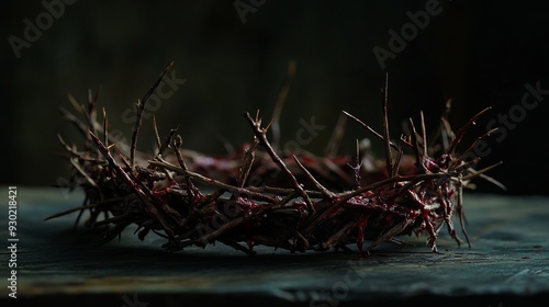 The inversion of the crown of thorns and the crown, which symbolizes Jesus' suffering and trials, symbolizes the death of the Savior and the resurrected King, background for Passion Week