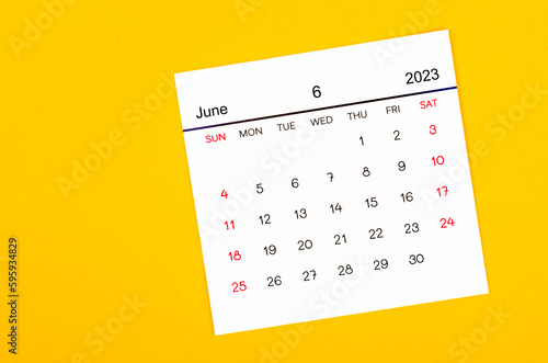 The June 2023 Monthly calendar for 2023 year on yellow background.