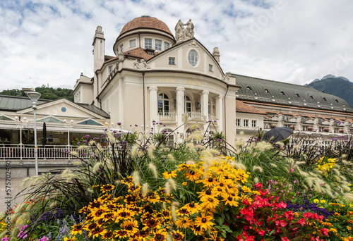 the Kurhaus and Theatre of Meran in the historic center of Merano in South Tyrol, Bolzano province, Trentino Alto Adige, northern Italy - Juli 16, 2020