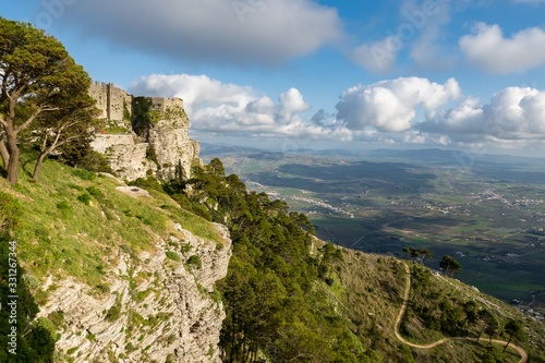 The landscape with Castello di Venere in Erice, Sicily, Italy and mountain Monte Erice