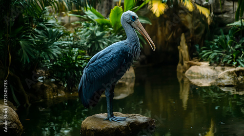 stork, marsh, habitat, zoo, lush, greenery, nature, environment, feather, posture, ecosystem, wildlife, bird, conservation, water, flora, fauna, calmness, immobility, serenity, biodiversity, exotic, animal, pristine, landscape, photo, scene, high-coloured, isolation