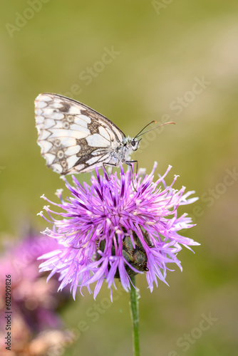 The marbled white - Melanargia galathea resting on Centaurea scabiosa - greater knapweed