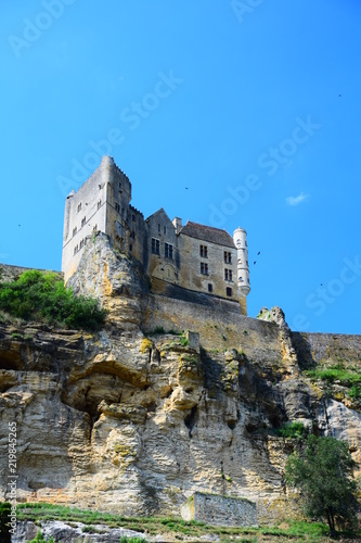 The medieval fortress of Beynac as seen from the Dordogne River in Aquitaine. France